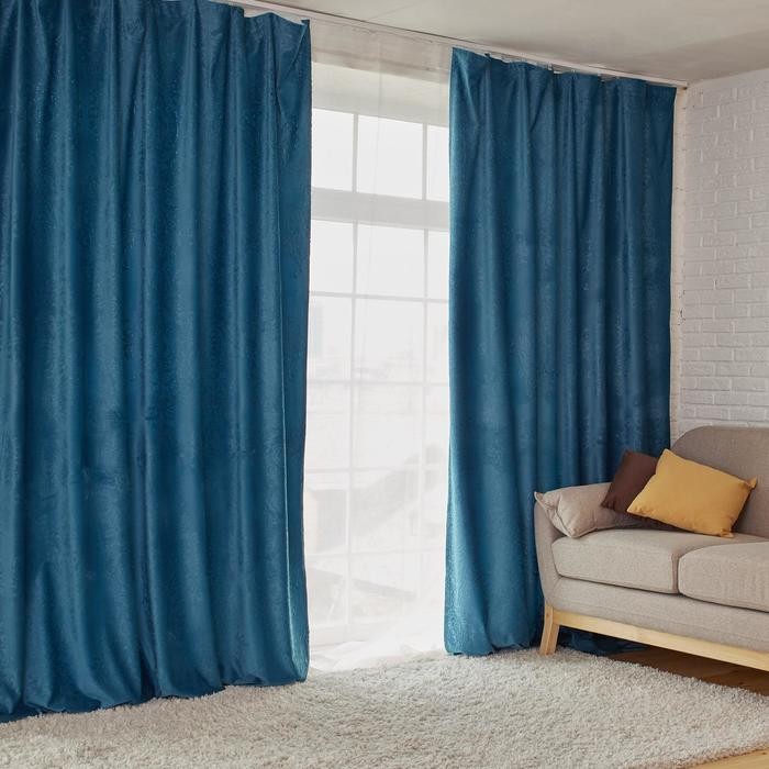 Штора портьерная «Этель» 230*270 см Валенсия Лазурный ,100% п/э