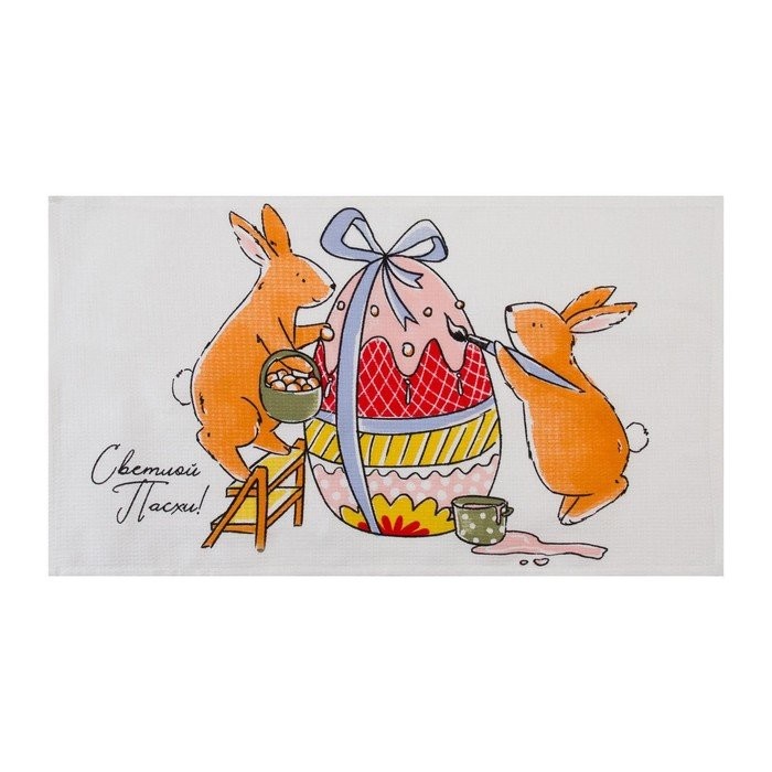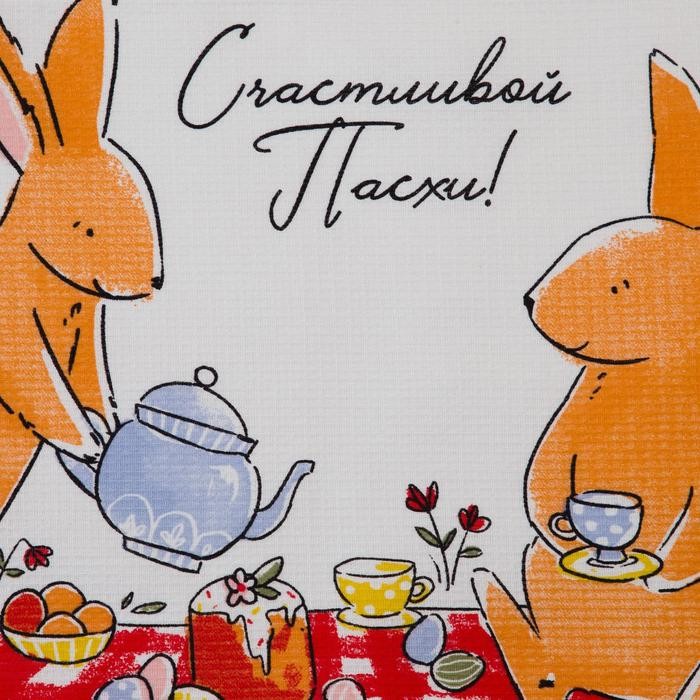 Набор кухонных полотенец Доляна «Пасхальные зайчики», 35х60см-2 шт, 100% хл, вафля 160 г/м2