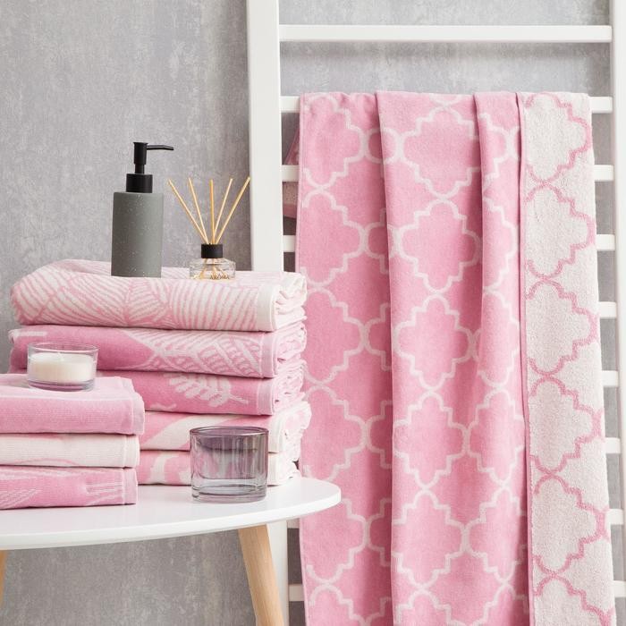 Полотенце махровое Этель Ornament розовый, 70×130 см, 100% хл, велюр, 420 гр/м2