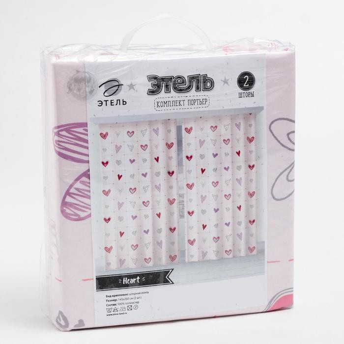 Комплект штор «Этель» Heart, 145*260 см-2 шт, 100% п/э