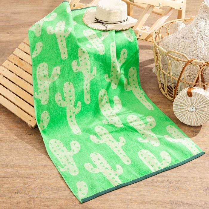Полотенце «Кактусы» 70*140 см, велюр/махра 350гр/м2, 100% хлопок
