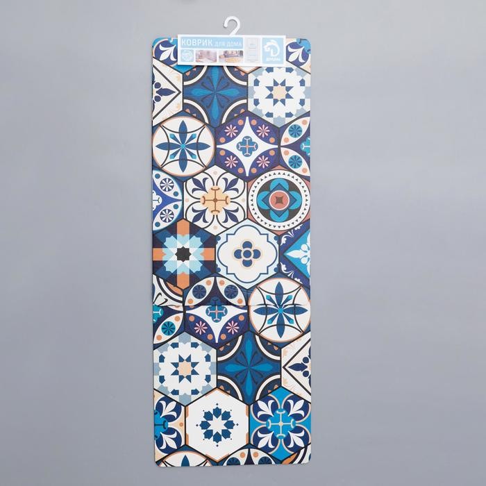 Набор ковриков для ванны и туалета Доляна «Мистери», 2 шт: 45×75, 45×120 см, цвет синий