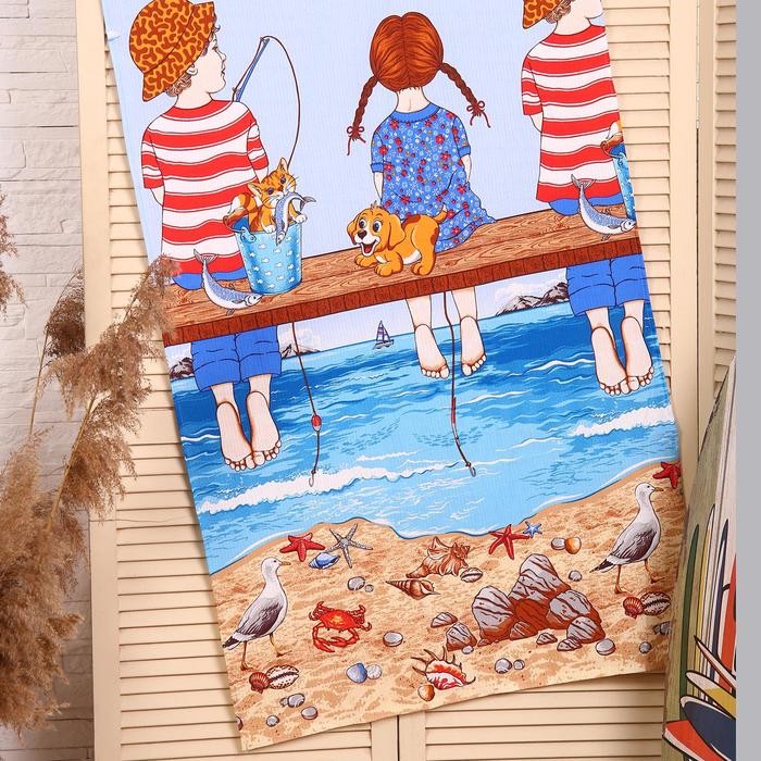 Полотенце — Панно вафельное Рыбалка рис 35017, (пакет) 80×150 см, хлопок 100%, 170г/м2
