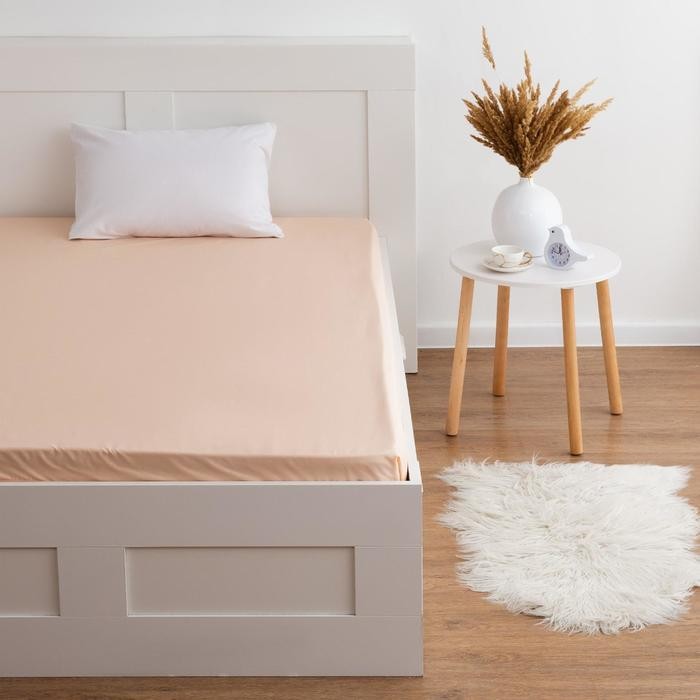 Простыня на резинке Этель 140*200*25 см, цв. бежевый, 100% хлопок, мако-сатин, 128 г/м²