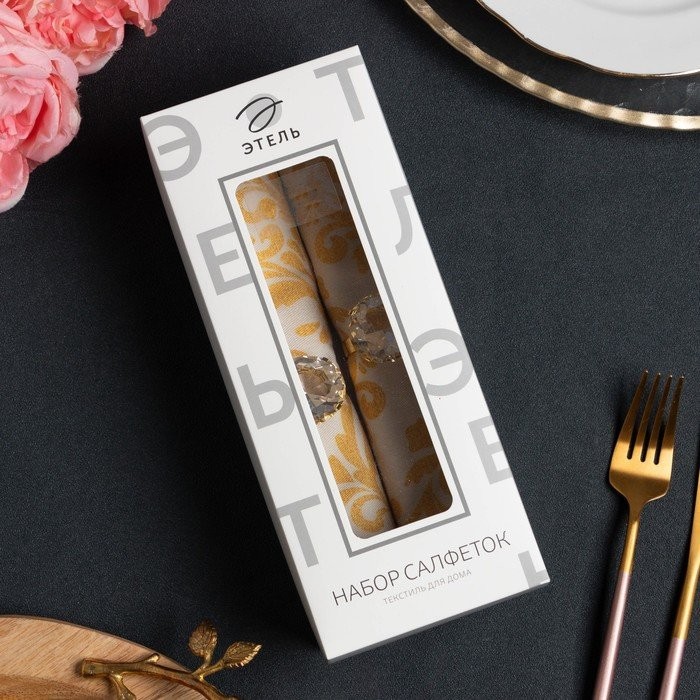 Набор салфеток с декоративными кольцами «Вензель» 46×46 см — 2 шт, 100% хл, саржа 190гр/м2