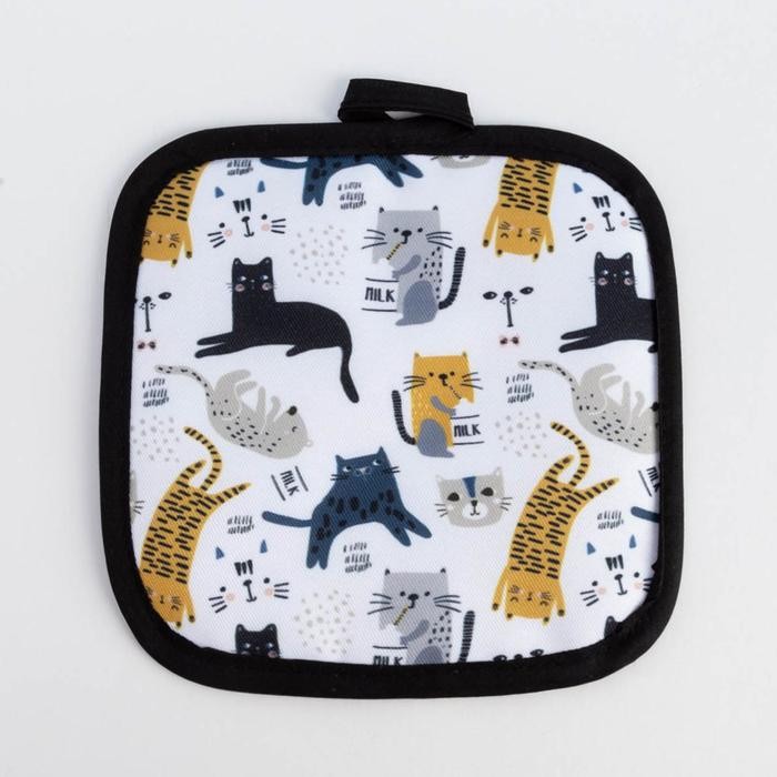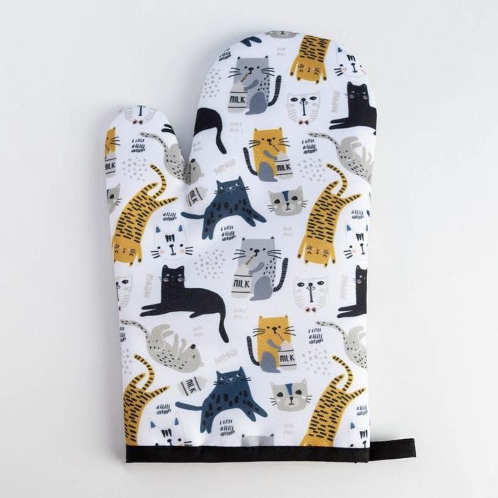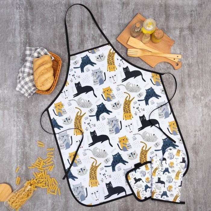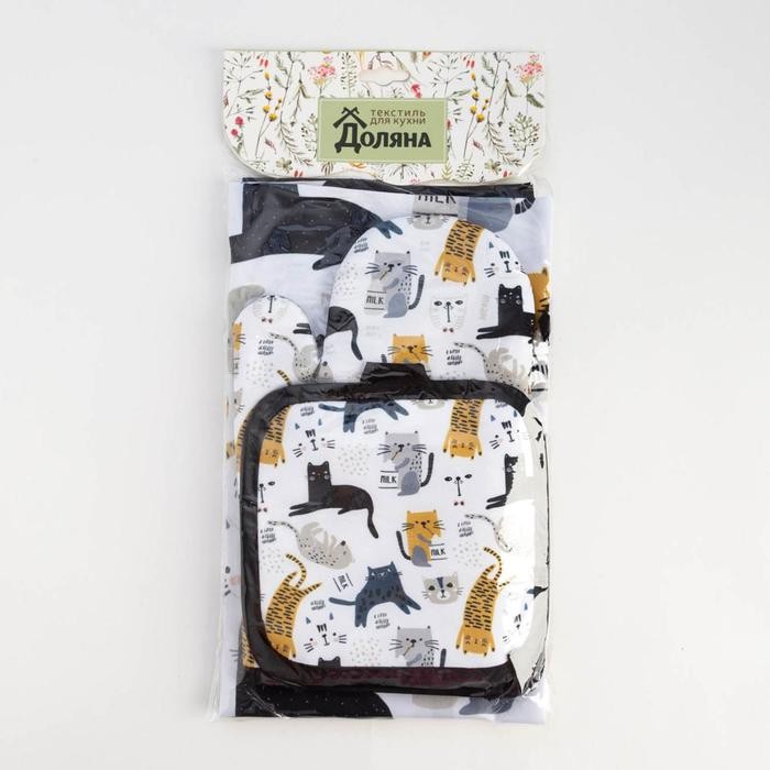 Кухонный набор Доляна «Котики», прихватка 17*17см, рукавица 26*16см, фартук 60*80 см 100% п/э
