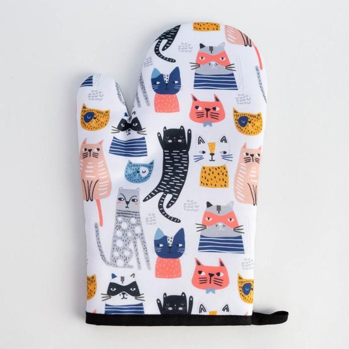 Кухонный набор Доляна «Котики» вид 2, прихватка 17*17см, рукавица 26*16см, фартук 60*80 см 100% п/э