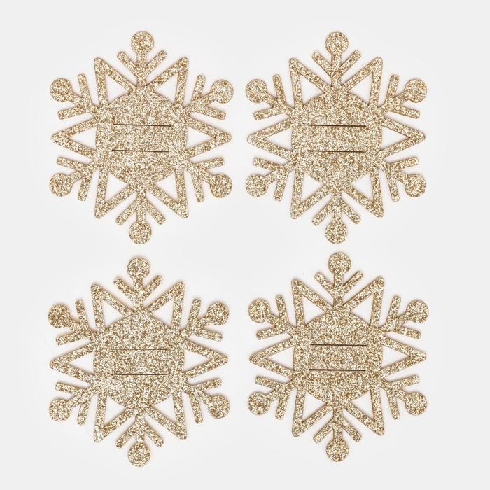 Набор для декора столовых предметов «Снежинка», 4 шт, цв. золото 6,5×7,5 см, 100% п/э, фетр 626 098