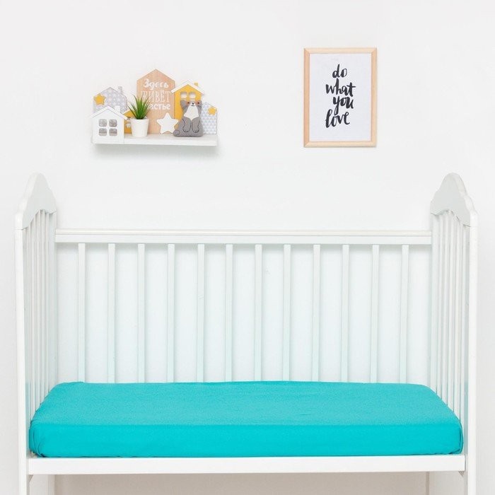 Простыня прямоугольная «Крошка Я» 100×160 см, бирюзовый, 100% хл, поплин