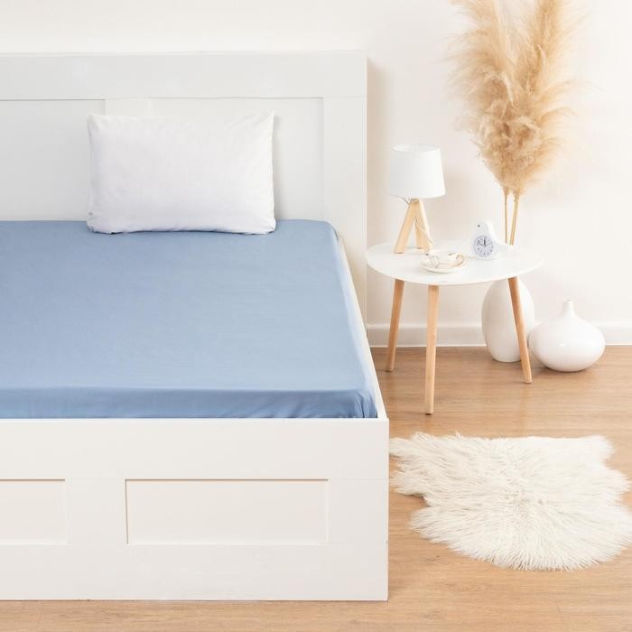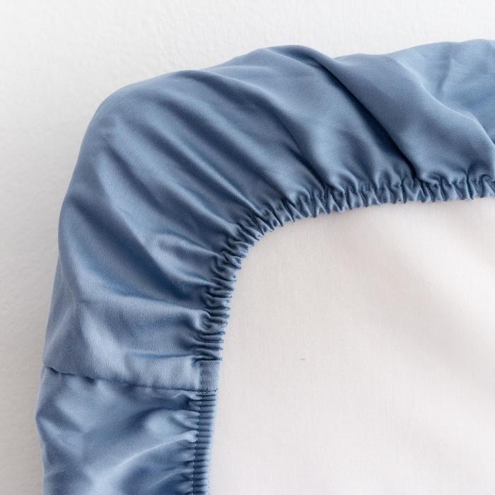 Простыня на резинке Этель 140*200*25 см, цв. синий, 100% хлопок, мако-сатин, 128 г/м²