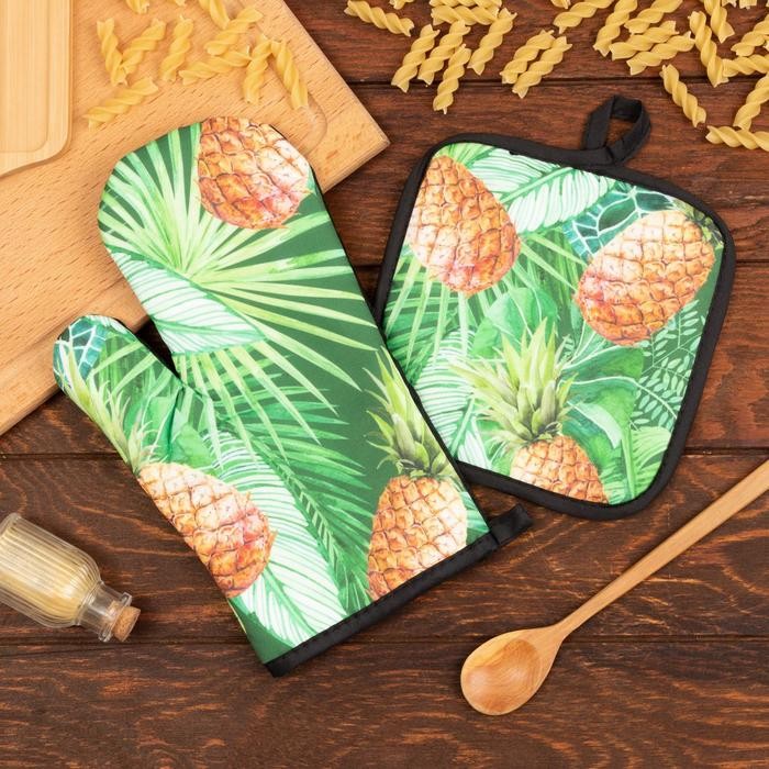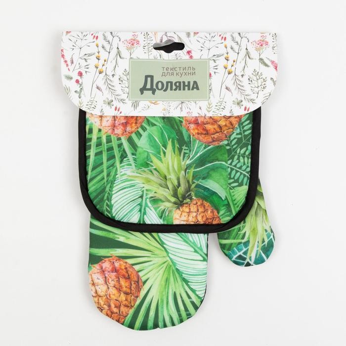 Кухонный набор Доляна «Ананасы» прихватка 17*17 см, варежка-прихватка 26*16 см, 100% п/э