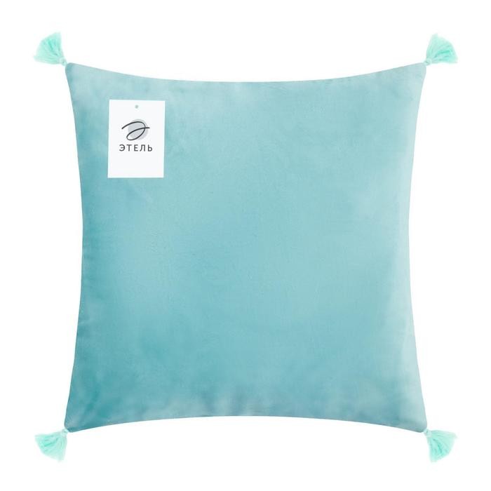 Наволочка на подушку с кисточками Этель цвет голубой, 45×45 см, 100% п/э, велюр