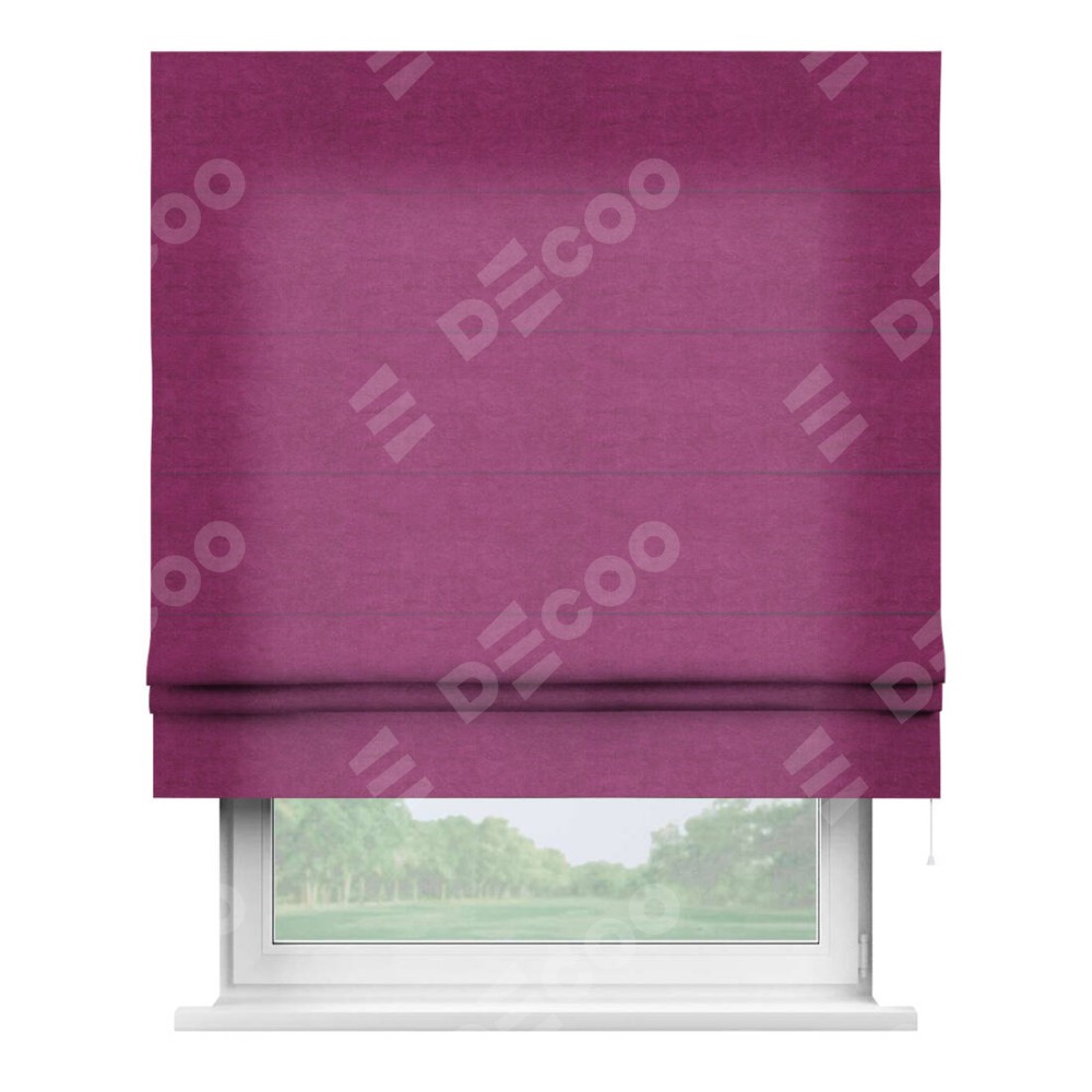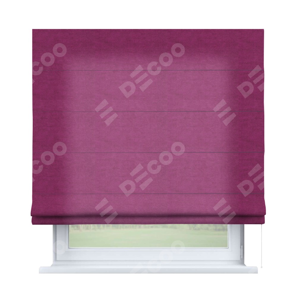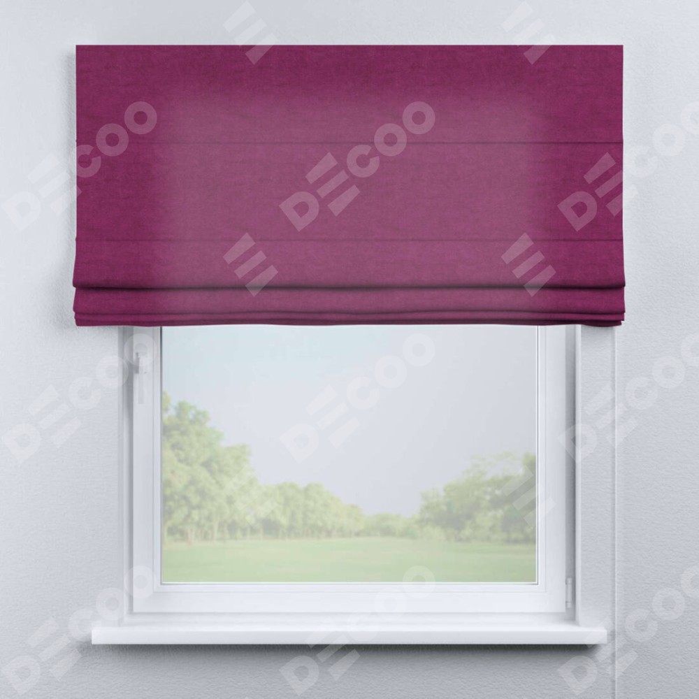 Римская штора производителя «Cortin», используется для проёма, пошита из ткани вельвет фиолетовый, артикул ткани 85552. Имеет универсальный механизм и подходит для монтажа: на потолок, на стену и в нишу.