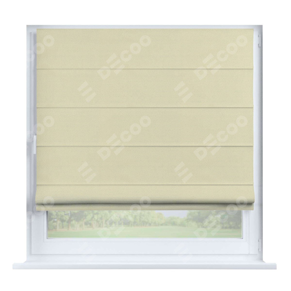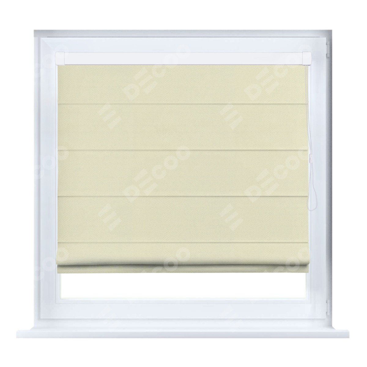 Римская штора производителя «Cortin», устанавливается на створку окна, пошита из ткани блэкаут однотонный бежевый, артикул 88283. Штора шьётся по индивидуальным размерам, для данного типа римской шторы возможная ширина от 35 до 150 см., высота до 250 см.