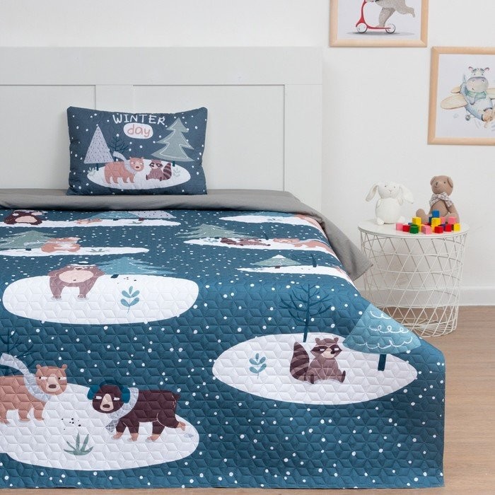 Покрывало детское и наволочка Этель 1,5 сп, «My winter», 145×210 см, 40×60 см, микрофибра