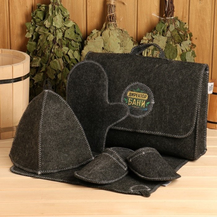 Набор банный «Мужской» портфель 5 предметов, серый, с вышивкой