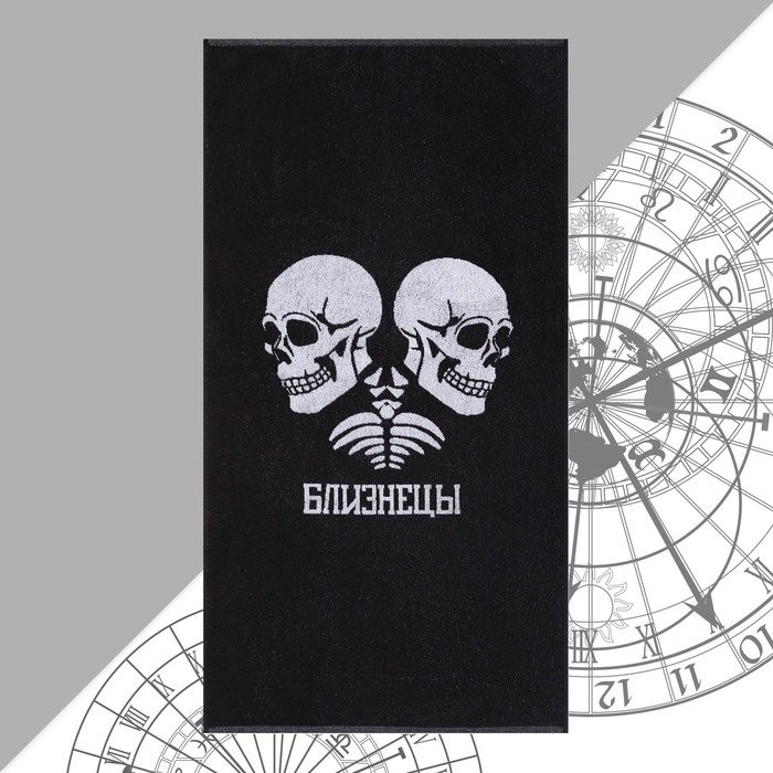 Полотенце махровое Этель «Знаки зодиака: Близнецы» чёрный, 67×130 см, 420 гр/м2, 100% хлопок