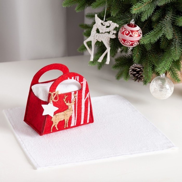 Набор полотенец в корзинке Экономь и Я «Снежный лес» Вид 1, 30×30 см-2 шт, 100% хл, 320г/м2