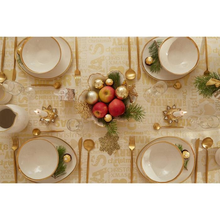 Скатерть Этель «Новый год: Merry xmas» цвет золотой, 142*283 +/-3 см, 115 ±10 гр, 100% п/э