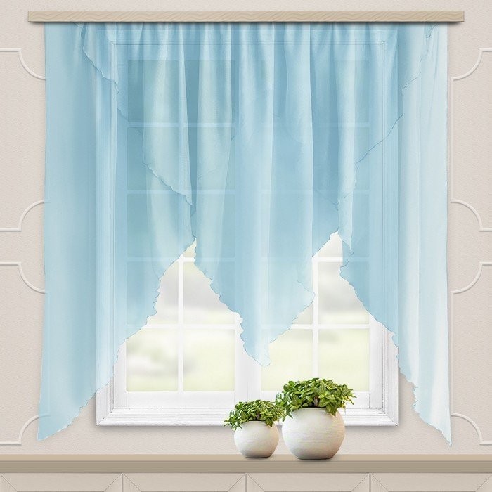 Комплект штор для кухни «Мелисса» 300×160 см, голубой, вуаль, пэ