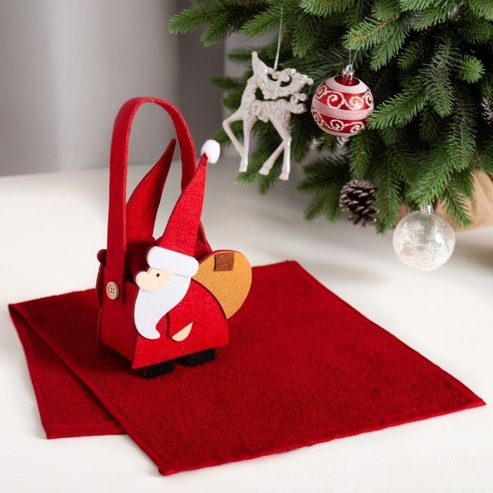 Полотенце в корзинке Экономь и Я «Дед Мороз» 30*60 см, цв. бордовый, 100%хл, 320 г/м2