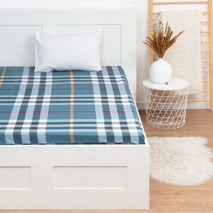 Простыня на резинке LoveLife 140*200*25см, «Клетка», 100% хлопок, сатин, 125г/м²