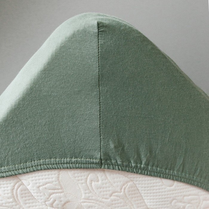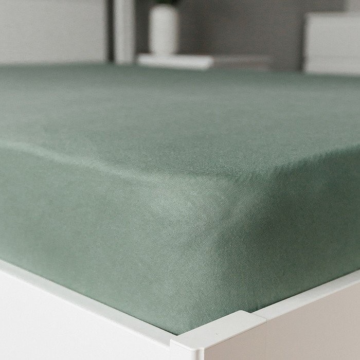 Простыня на резинке трикотажная, размер 160х200х25см, цвет хаки, кулирка 120г/м², 100% хлопок