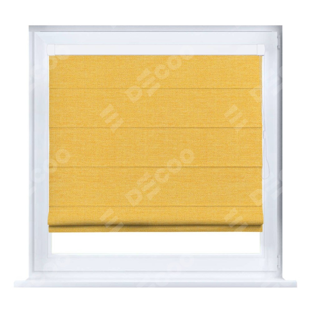 Римская штора производителя «Cortin», устанавливается на створку окна, пошита из ткани лён желтый, артикул 63738. Штора шьётся по индивидуальным размерам, для данного типа римской шторы возможная ширина от 35 до 150 см., высота до 250 см.