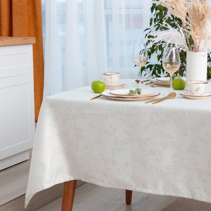 Скатерть Этель «White patterns» цвет белый, 142*220 +/-3 см, 115 ±10 гр,100% п/э