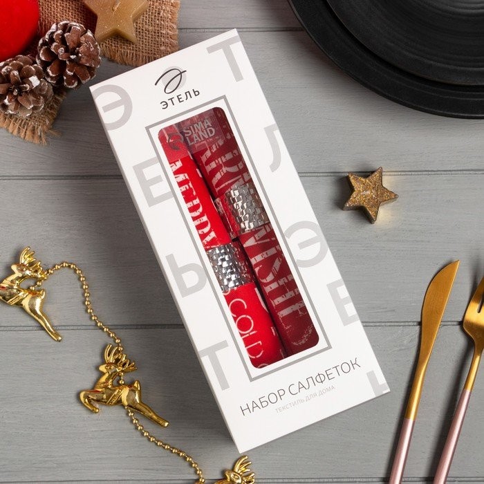 Набор салфеток с декорат. кольцами «Happy holidays» 45×45 см — 2 шт, 100% хл, саржа 190гр/м2