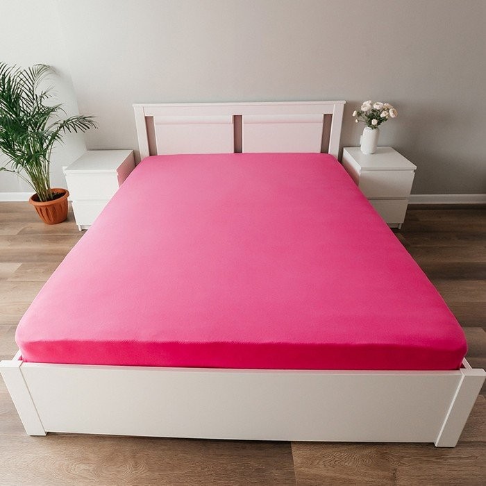 Трикотажная простынь на резинке 140х200х25см, фуксия кулирка, 120г/м хл100%