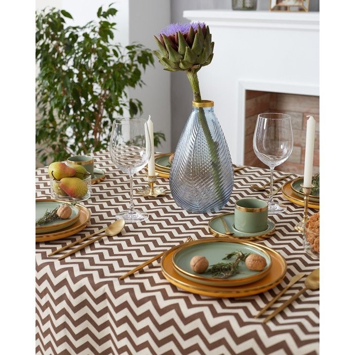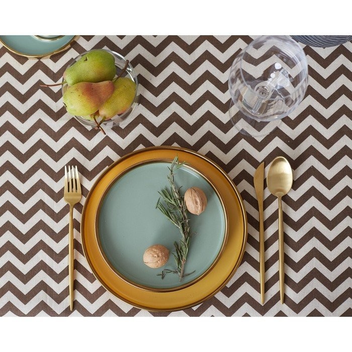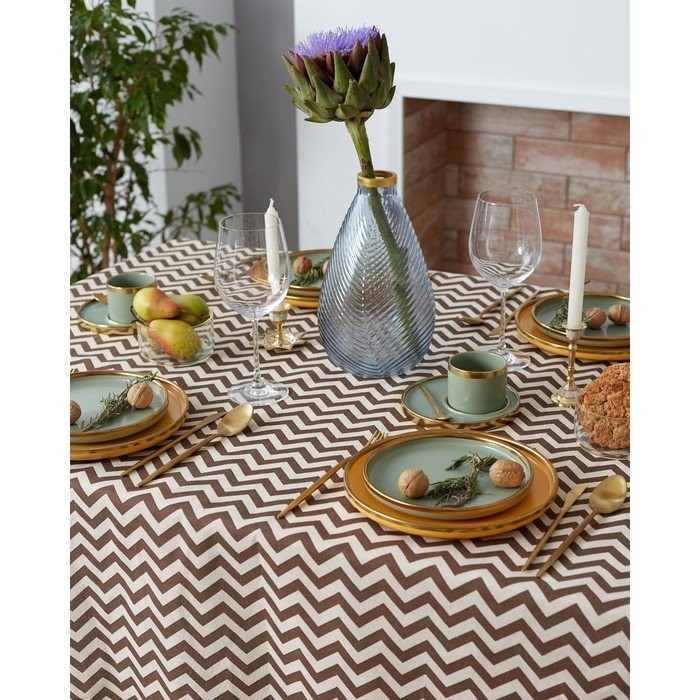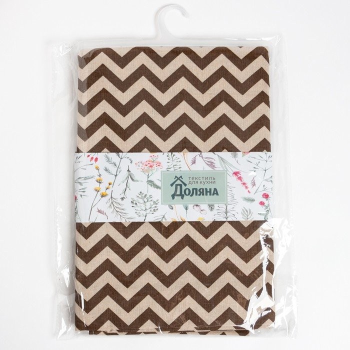 Скатерть Доляна 145х145см, Зигзаг цв.коричневый, 100%пэ, рогожка 200 гр/м