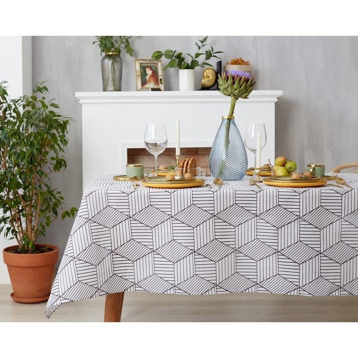 Скатерть Доляна 145х145см, Тренд цв.белый, 100%пэ, рогожка 200 гр/м