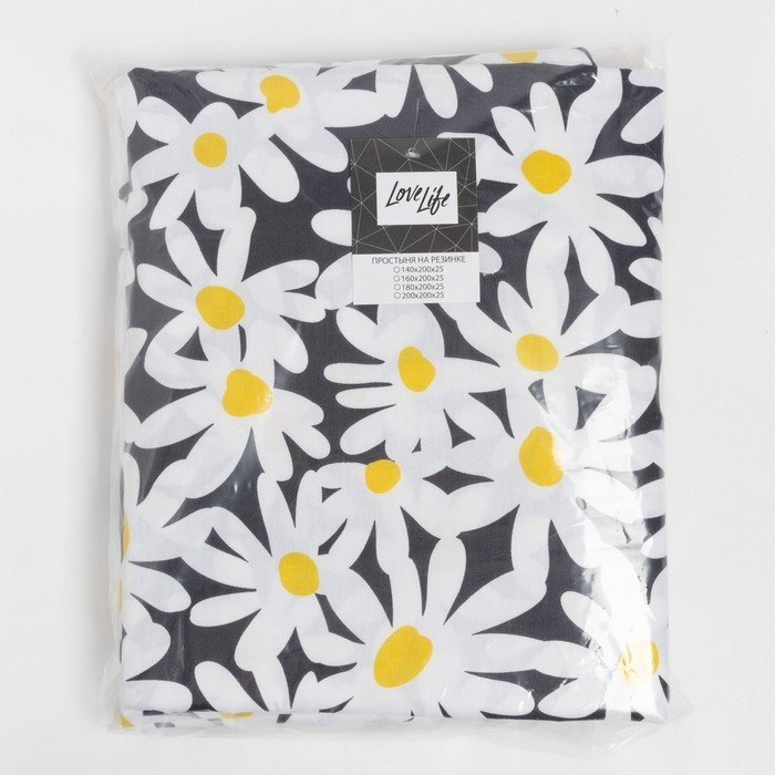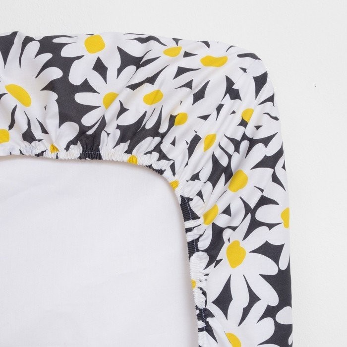 Простыня на резинке LoveLife 140*200*25см, «Ромашки», 100% хлопок, сатин, 125г/м²