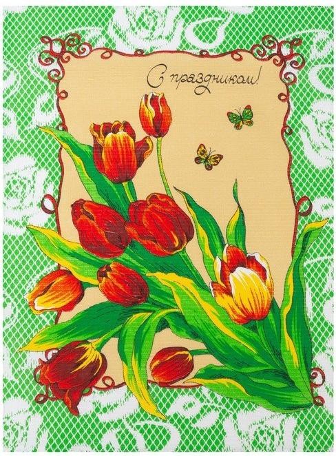 Полотенце в коробке 45×60 см, С праздником, салатовый, вафля, 160 гр/м2, хлопок 100%