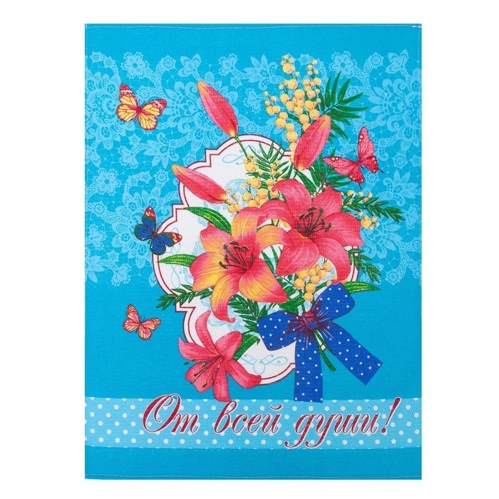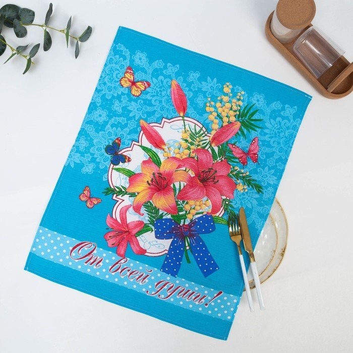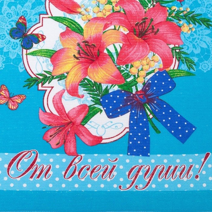 Полотенце в коробке 45×60 см, Лилия, бирюза, вафля, 160 гр/м2, хлопок 100%
