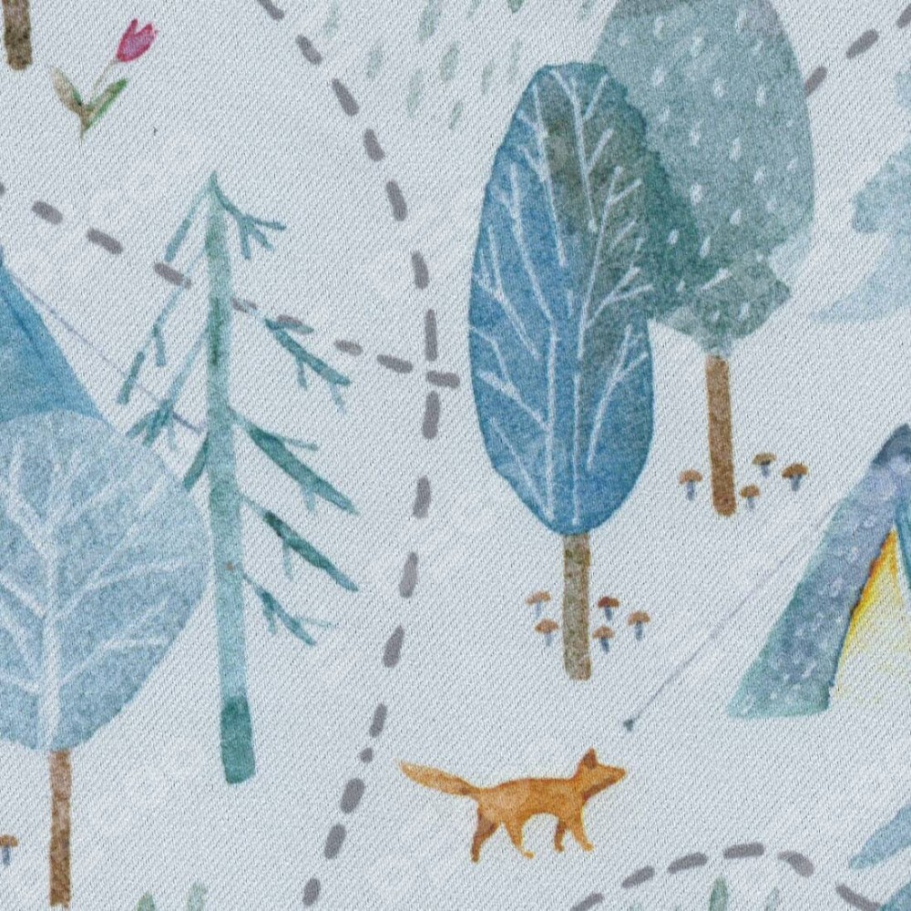 Римская штора кассетного типа, производителя «Cortin», устанавливается только на пластиковые окна и прилегает к стеклопакету, пошита из ткани блэкаут с нанесением сублимационной печати «Лесистая местность».