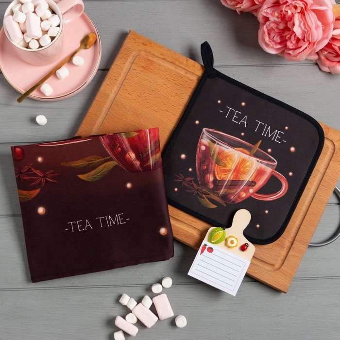 Набор подарочный «Время для чая» полотенце 40х73см, прихватка 19х19см, магнит 11х7см
