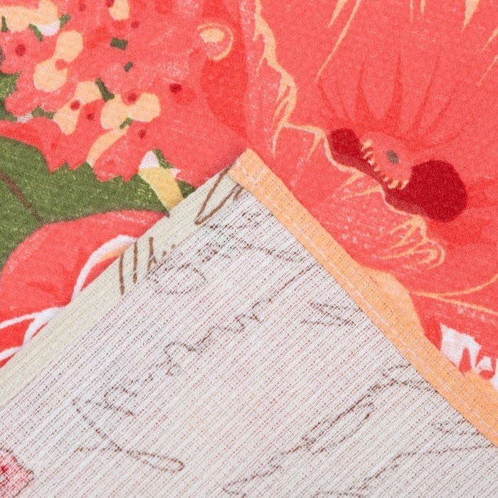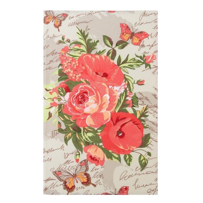 Полотенце 35×60 см, Букет розы-маки, песочный, вафля, 160 гр/м2, хлопок 100%