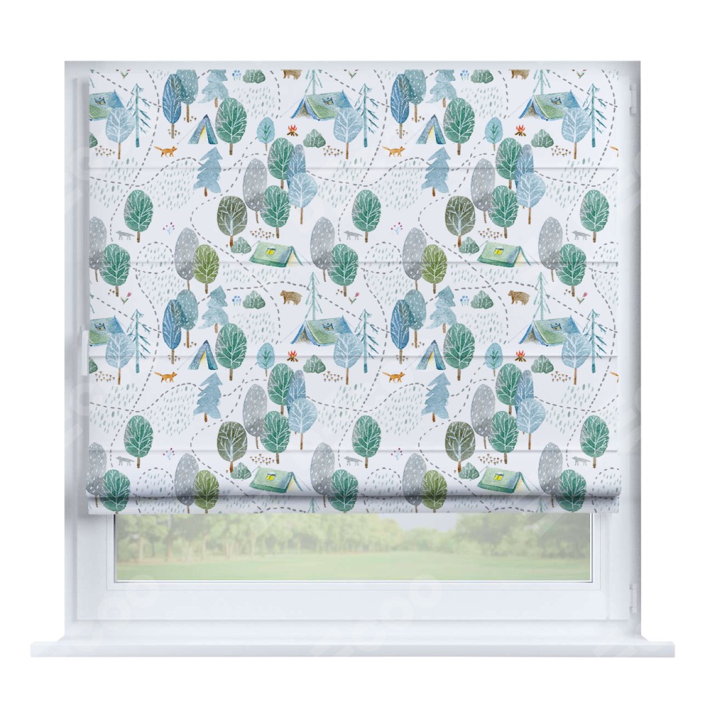 Римская штора производителя «Cortin», устанавливается на створку окна, пошита из ткани блэкаут с нанесением сублимационной печати «Лесистая местность». Штора шьётся по индивидуальным размерам, для данного типа римской шторы возможная ширина от 35 до 150 см., высота до 250 см.