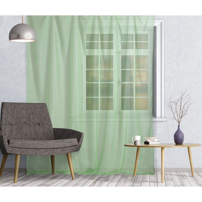 Штора вуаль на шторной ленте 280×250 см, зеленый, капрон, 100% пэ