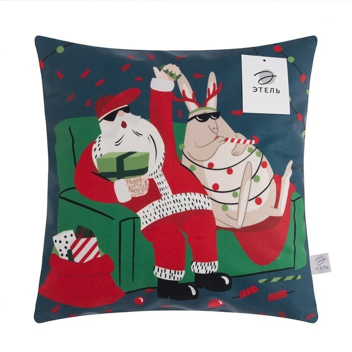 Наволочка на подушку Этель «Дед мороз и заяц», 40*40 см, 100 п/э, велюр