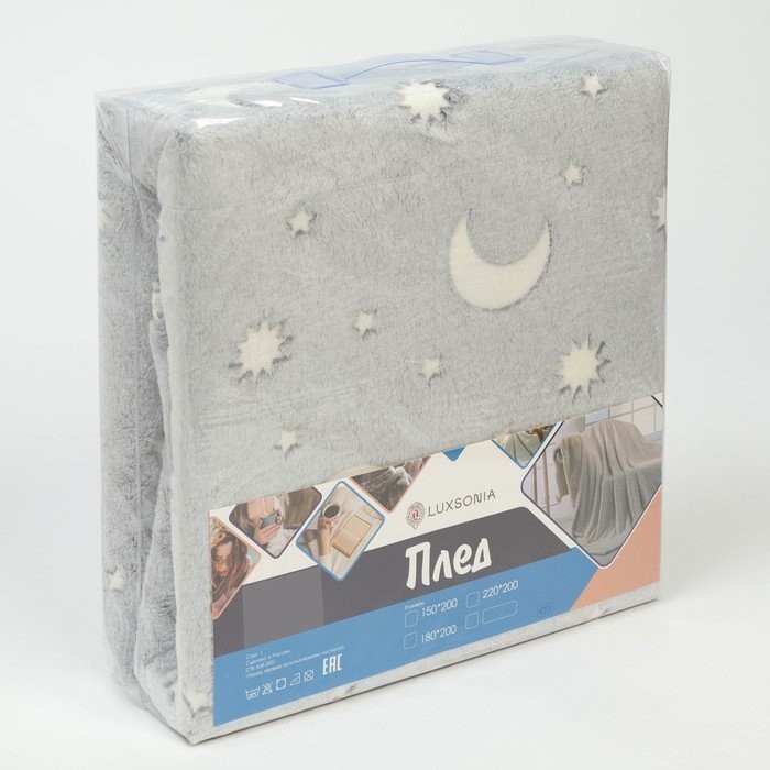 Плед светящийся 180×200 см «Месяц», велсофт 260г/м