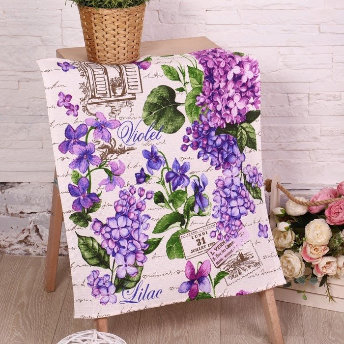 Полотенце 50×60 см, Сирень, вафля, 170 гр/м2, хлопок 100%