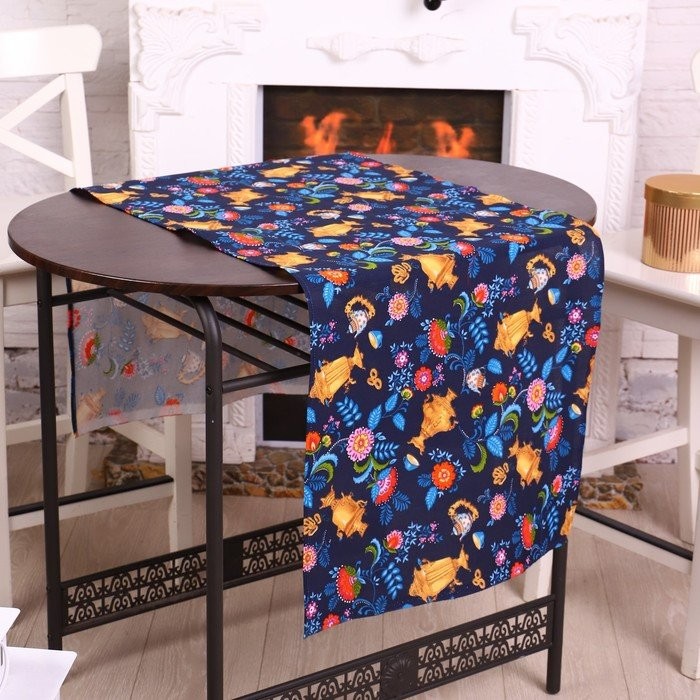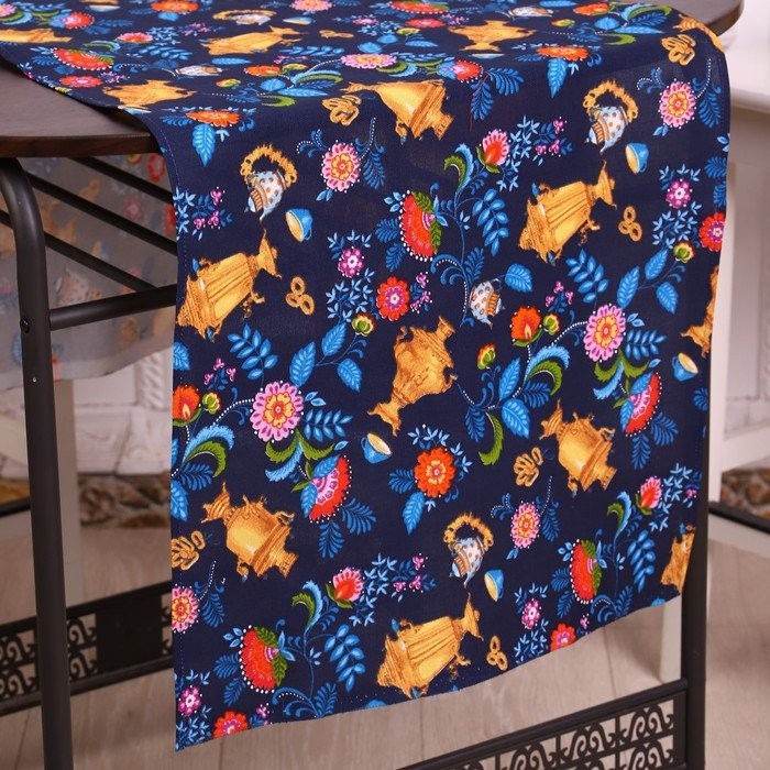 Дорожка-рушник 50×150 см «Самовары», синий, рогожка, хл 100%