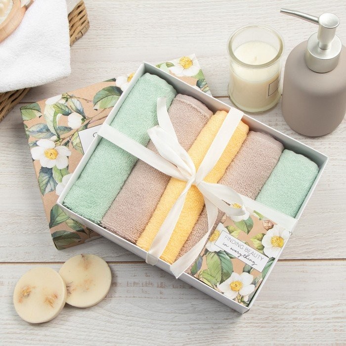 Набор махровых полотенец Этель Summer time 30×30 см -5шт, 100% хлопок 340 гр/м2