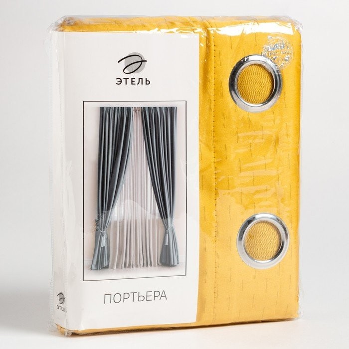 Штора портьерная Этель «Штрихи» цв.желтый,на люверсах 145*260 см, 100% п/э