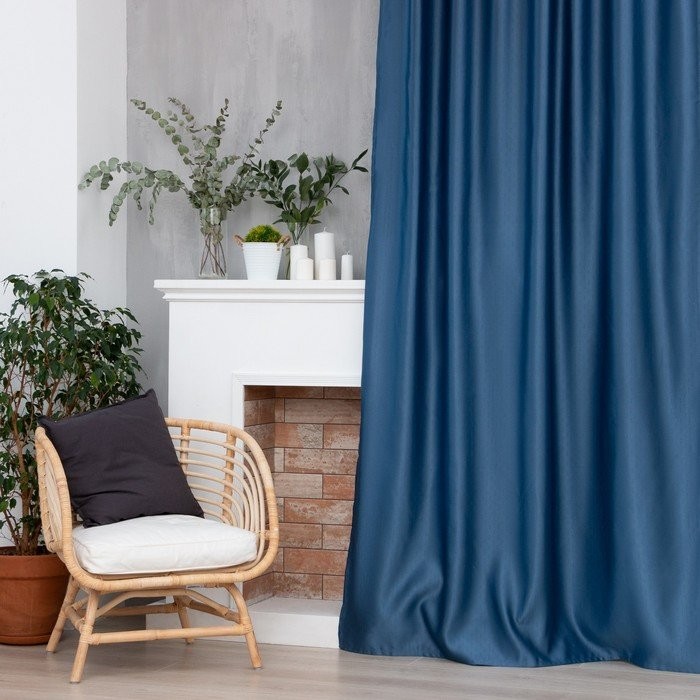 Штора портьерная Этель «Штрихи» цв.синий,на люверсах 130*300 см, 100% п/э