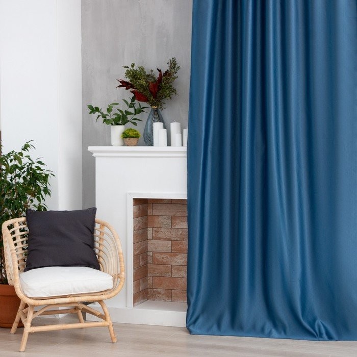 Штора портьерная Этель «Штрихи"цв.синий,на шторн.ленте 270*300 см,100% п/э
