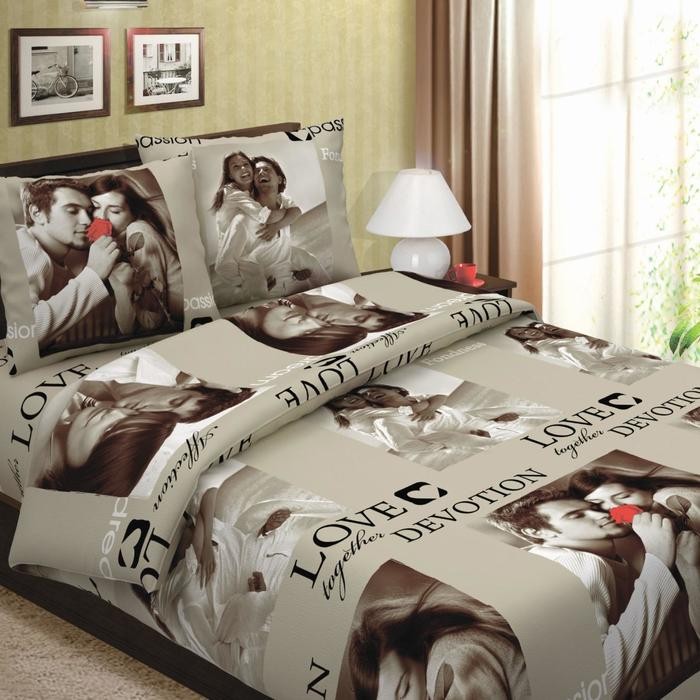 Постельное бельё «Традиция: Сладкая парочка беж», 2 сп., 175×217 см, 180×220 см, 70×70 см. 2 шт.,бязь 125 г/м, хлопок 100%